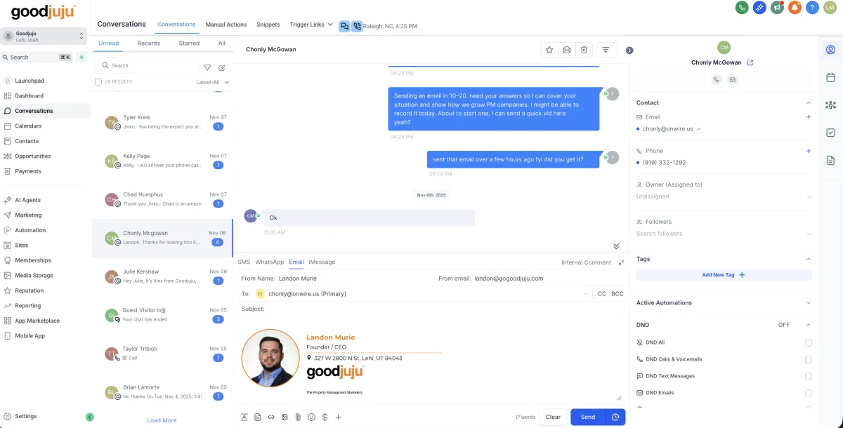 Utilize the jujuConvert mobile app for Iphone IOS and Google Play too see everything on the go. You can even respond to leads texts and emails or send new ones, all right from your phone!